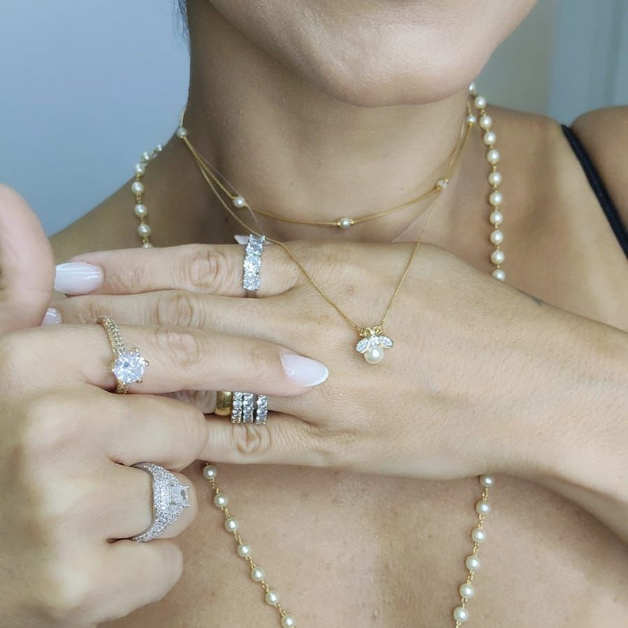 COLAR ABELHA COM PÉROLA