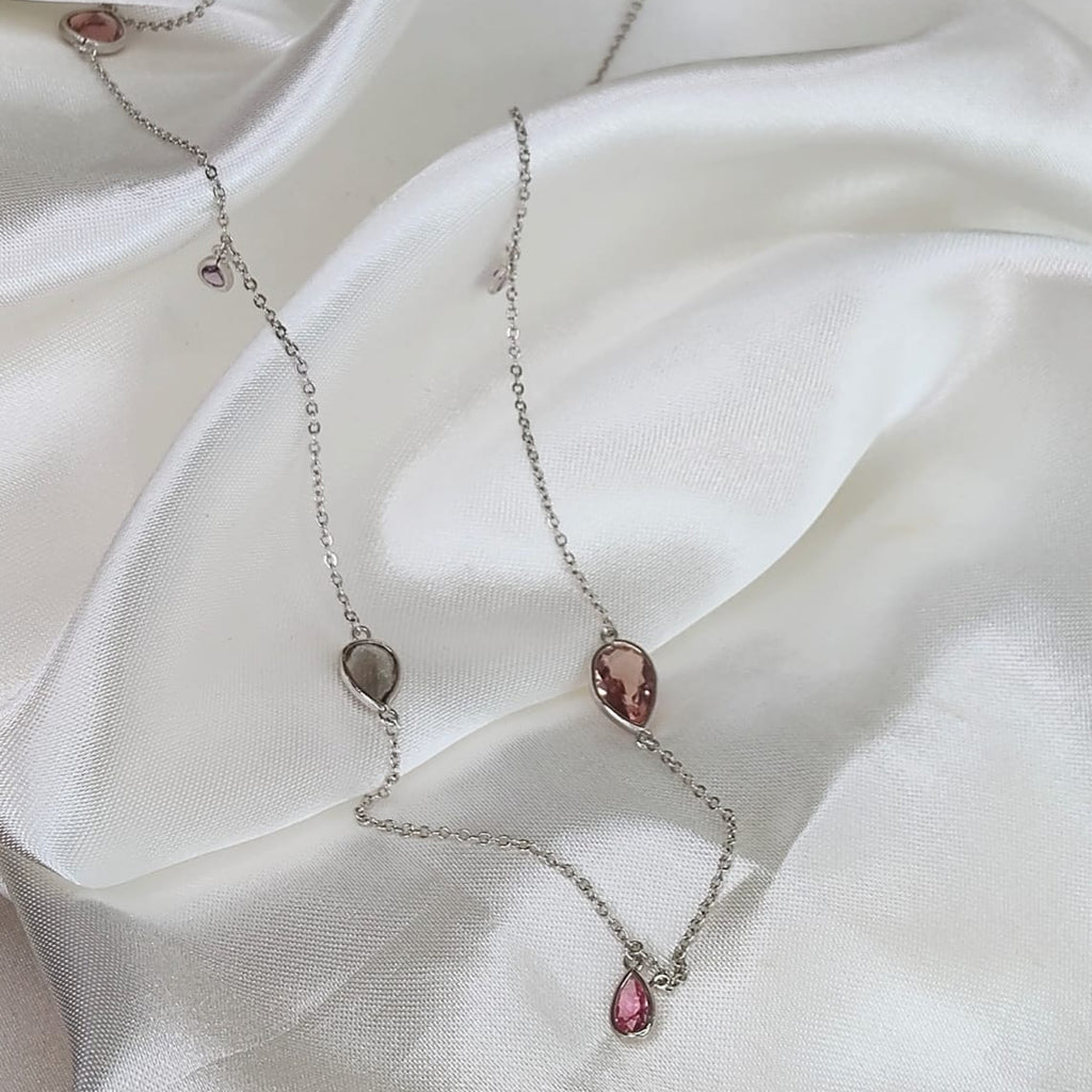 COLAR LONGO CRISTAIS DOZE GOTAS 80CM RÓDIO BRANCO